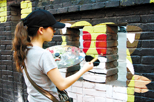 川美油画本科专业的学生是涂鸦分子的主要人群。戴着防毒面具,手持自喷漆和画笔颜料,在墙边忙着涂鸦,在这些涂鸦分子看来并不是一时的心血来潮,要完成一幅涂鸦作品至少要忙上好几天:首先要有构思,画出草稿,再根据草稿涂鸦在墙上。