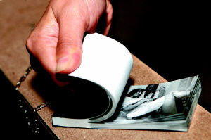 来自阿根廷的米盖拉.罗斯切尔德带来的《眼泪杀手》是本次展览上唯一不用电源、不会发光的作品。它讲述了一个关于连环杀手米盖拉.罗斯切尔德的故事。在展区内,回字形地摆放了73本由单帧图片构成的“电影书”,巴掌大小的书由40张黑白照片组成———当观众快速翻看时,照片变成了连动的影像。现场,排起了长队,大家边翻动小书,边观看自己“放映”的“电影”。