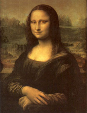 蒙娜丽莎: 意大利著名画家 达芬奇 创作于1504年左右。画中的蒙娜丽萨成为美学的, 哲学的象征性形象, 早已成为达达主义和超现实主义画家模仿的对象。