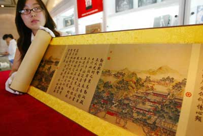 为纪念圆明园建园300周年,中国收藏家协会和中国圆明园学会,联合推出了具有极高收藏价值和纪念意义的绝版纯金画卷《圆明园四十景图》。该图卷真实再现了昔日圆明园的繁华盛景,近日在中华世纪坛发行以来,在社会上引起了强烈反响,各路收藏家争相抢购,希望能亲眼目睹天下第一皇家名园的风采。
