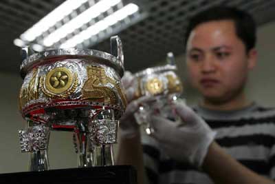 上海某玉器店老板吴先生认为,“香港回归十周年纪念宝鼎”未来的升值空间至少在100%以上。宝鼎是6月18日起公开发行的,6月19日,吴先生就购买了一尊,前几天,他又订购了一尊。