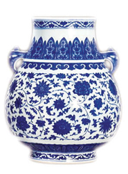 如果小件瓷器的精彩之处是上面的图案“小有洞天”,那么在大件瓷器上的图案则是将表现对象展现得淋漓尽致,无论是纹饰,还是图案,都让藏家叹为观止。在今年北京诚轩上推出的清乾隆·青花缠枝花卉纹大鸠耳双环尊,全器自口沿而下共分六层纹饰装饰,分别为卷草纹、双层蕉叶纹、如意云头纹、缠枝花卉纹、莲瓣纹和卷草纹,双层蕉叶纹上部留白,使全器纹饰布局产生虚实之分,清新悦目;中国嘉德推出的清嘉庆·粉彩婴戏图大瓶,估价40万至60万元,成交价为212.8万元,其中小童或舞龙、或提灯、或手持如意、或敲锣打鼓、或燃放爆竹、或模仿状元及第场景,姿态各异,充满热闹欢快的气氛,整体场面壮观,绘画错落有致。