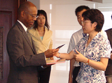 2007年7月24日,美国加州大学尔湾分校校长Michael V Drake先生一行来国家留学基金委进行了访问,张秀琴秘书长代表留学基金委会见了Michael V Drake校长一行,并同他们进行了工作会谈。双方就国家建设高水平大学公派研究生项目、高校基础课任课教师双语教学项目等进行了深入的交流。加州大学尔湾分校副校长Lawrence H Gold先生、Thomas C Cesario教授、Jenchen Yang教授参加了会谈,留学基金委出国部、项目部的有关人员也参加了会见。