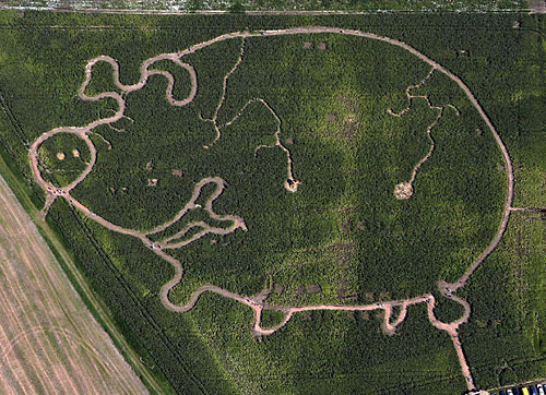 8月5日,德国北部吕根岛的一片玉米田里出现一幅巨型猪图案。这是当地农民用装有全球定位系统的切碎机在3.7万平方米的玉米田里“画”出来的,吸引了许多人前来参观。