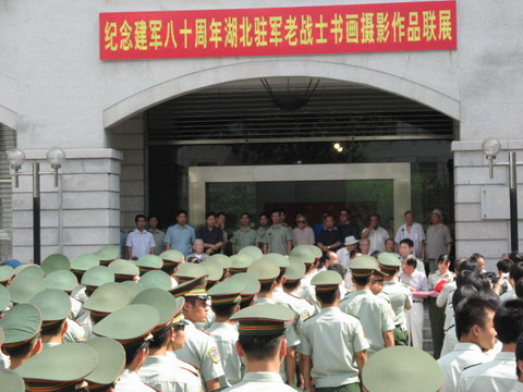 为纪念中国人民解放军建军八十周年,迎接党的十七大胜利召开,7月6日,由湖北驻军主办的“纪念建军八十周湖北驻军老战士书画摄影联展”开幕式在我院展览馆隆重举行。