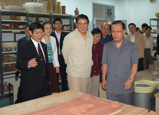 2007年5月31日,全国人大常委会副委员长李铁映同志在上海市人大常委会主任、上海视觉艺术学院名誉校长龚学平的陪同下视察学院。校长陈立民、常务副校长梁晓庄、校教学指导委员会主任戴平等学校领导陪同。