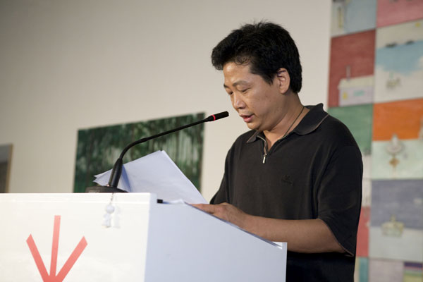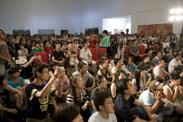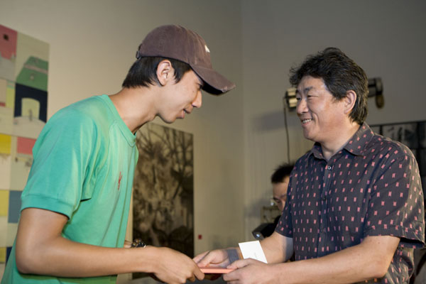 从2007年6月16日开始,此次活动进入了评审阶段。经过初选,由50多名中国知名艺术家、艺术理论家、艺术批评家组成的评审委员会挑选了600余张作品入选了本年度的“提名展”。2007年7月28日,评审委员会以不记名投票的方式从入展作品中选出了特等奖、金奖、银奖以及铜奖若干名。为鼓励更多的青年艺术人才坚持自己的艺术创作,繁荣中国的当代艺术,评审委员会特在原有奖项的基础上增设了优秀奖。方力钧、岳敏君、谭平、洪磊四位艺术家为了中国当代艺术的未来,慷慨设奖,鼓励有潜力的青年艺术人才。岳敏君为“岳敏君奖”获得者李婷婷颁奖谭平为“谭平奖”获得者梁彦达颁奖洪磊为“洪磊奖”获得者孔妮娅颁奖方力钧为“方力钧奖”获得者付斌颁奖开幕式现场天津工业大学时装表演