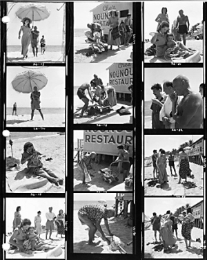 “对于绝大多数使用35mm胶片的摄影师来说,影像的第一次真实展现不啻于一张密密排列整卷图像的胶片小样。这些小样就如同画家以及雕塑家的写生本一样,成为摄影师——尤其是新闻摄影记者们衡量曝光、快门、拍摄内容是否恰当的重要尺度。你往往可以在小样上看到不少圈点和注解,这些涂鸦般的内容将决定图片的去留以及裁剪。”