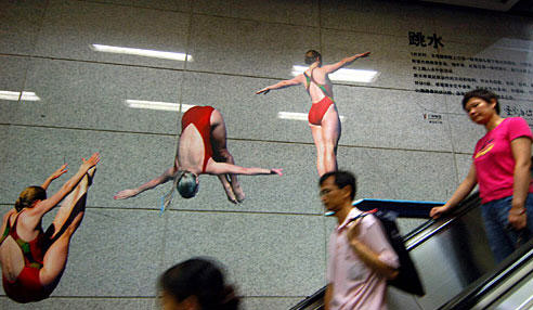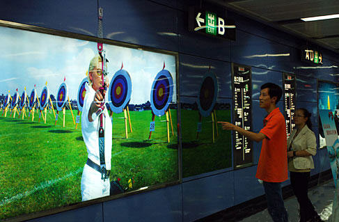从8月8日起,广州地铁总公司属下的18个车站张贴了主题为“圣火由你点燃”的巨型体育公益宣传画,用以介绍奥运会的竞赛项目。