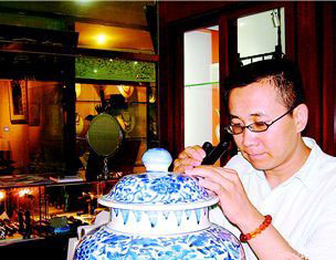 正是由于很多收藏者把古玩瓷器当成了和股票一样的投资工具,没有文物鉴定方面的知识,缺乏古玩鉴赏的经验,更不曾认真研习,一味地盲目冲动,怎么能在大浪淘沙中淘到金子呢?而也正是看到了现在收藏界的燥热气氛,造假者应势而出,各种做旧造假手段翻新,花样不断,层出不穷,令人应接不暇。这也是此次国宝评选中参选瓷器为何难见珍品的重要原因。关海森先生入行十几年,在收藏界目睹了大量将赝品当真货收藏的事例。他记得有一个朋友曾用二十万元从一个老者手中买到一个青花瓷瓶,这个朋友如获至宝,专门请他去鉴赏,可关海森仔细察看了一番便断定这是一个现代工艺的赝品。这位朋友听了十分不快,不信是赝品。关海森让他把瓷瓶倒过来,用清水从上往下泼洒,没想到,从瓶子上流下来竟是血一样红的液体,原来这是用高锰酸钾做旧的新瓷瓶,高锰酸钾的细微颗粒还残留在瓶身上。盲目、从众、妄图一夜暴富的侥幸心理正是收藏界造假与赝品日益增多的症结所在。当然还有一部分造假者的手段十分高明,一般人很难用肉眼和经验识别真伪。关海森介绍说,曾有一个收藏者拿着一个瓷罐请他帮忙鉴定,那个瓷罐从外表看很是古旧,罐的底足是老的。关先生仔细观察后得出结论,这是一件赝品。原来这是用旧的古瓷的底“嫁接”新的瓶身,这种古今合璧的手段具有较强的欺骗性。