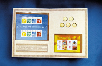 该册汇总收集了1980年我国发行的第一套奥运会和以后发行的奥运会主题邮票、小型张、小版张47枚。第二册收集了第29届奥运会吉祥物可流通纪念电话卡7枚;第一套和第二套可流通奥运纪念币5枚;以北京2008奥运会会徽为主票、赛项吉祥物造型为辅票的小版张5版计80枚;特别收藏第29届奥运会运动赛项图标不干胶小版张1版计8枚。如此丰富的珍贵藏品,充分诠释了“铭刻百年梦想,传承千载文明”的理念。