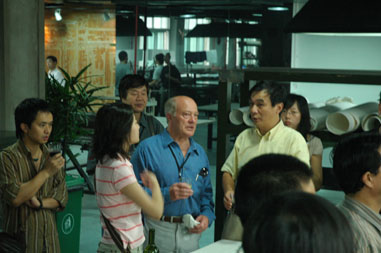 8月16日上午10:30分,2007西安美术学院国际版画工作室正式开始。我院副院长郭线庐教授,副院长王胜利教授,教务处处长贺丹教授,版画系主任杨锋教授和版画系的师生参加了工作室的启动仪式,仪式由我院国际合作与交流处处长吴树农主持。