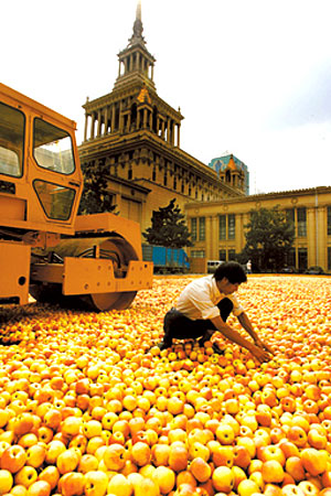 9月6日,为期4天的2007上海艺术博览会国际当代艺术展正式开始对公众开放。这次在展览中心门外压路机碾压苹果的行为艺术引起了很多市民的争议。