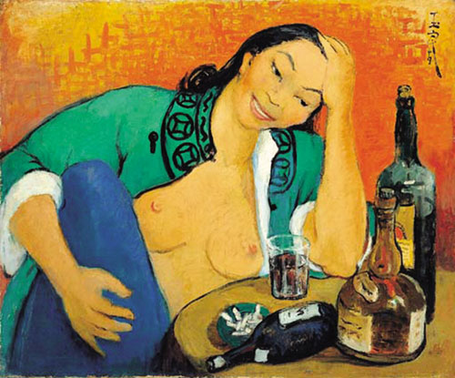 在目前的拍卖市场上,潘玉良作品的最高价出现在2005佳士得秋季拍卖会上,其在1949年创作的《自画像》以1021.8万元的价格成交。在这幅画里,潘玉良酒酣耳热,敞衣袒胸,醉意淋漓,形象正如人们描述的那样:喜好喝酒,不拘细节,气势不让须眉,颇有男子气度。显示了其希望突破世俗封建束缚的愿望。裸体女性是潘玉良画作中经常表现的一面,这主要显示其一心向往自由创作,力争女性自主意识。同时,我们也可以在画作中看到其女性独有的细腻柔美。她的油画《有扇子静物》(见图),曾经在上海拍出过66万元。静物主体仍是黄金比率的三角构图,但布纹桌面和背景的切割上却具有野兽派激情块然的影子,然而在色彩上却又回归印象派较为柔和沉淀的暖色基调,而八分折扇的视觉效果显著地提点出潘玉良深植内心的中国情思与文化血缘。