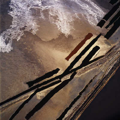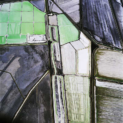 因为是远离大地对其进行记录,所有的作品实现了真正意义上的纪实:冷静而直接。侵蚀的地表、慢慢消失的湖泊、被砍削后的森林,被采空的矿区,大地自然形成的不同色块与抽象画中的色域惊人相似。被污染了的欧文湖面上绽开着“恶之花”,在一个世纪前,它就因为被向洛杉矶引水而枯竭。从犹他州上空俯视大地,画面上充满欢腾愉悦,但这样的欢腾揭示的是湖泊大面积蒸发的真相。