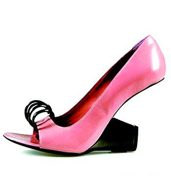 为迎合人们的时尚需求,近年来造型独特的高跟鞋层出不穷。鞋跟作为高跟鞋的灵魂,更是设计师们挥洒灵感的主要对象。风格前卫的美国知名时装设计师马克·雅各布斯设计的几款高跟鞋日前在纽约时装周亮相,吸引了众多眼球,原因是这些鞋均采取反传统设计,后部没有任何支撑物,鞋跟前移,平卧脚掌之下。