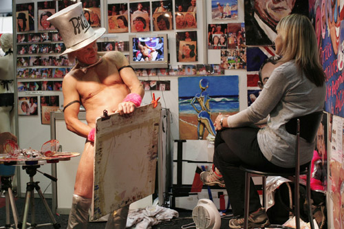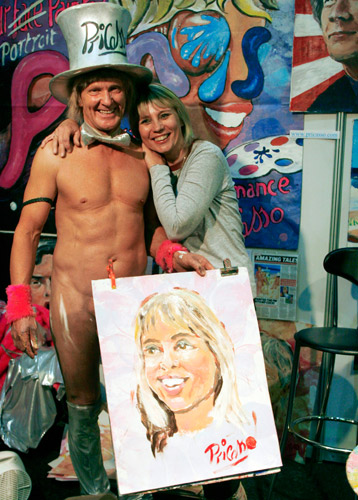 但“毕加索”最特别的是一手持画架、一手拿着性器官,在画布上涂抹出充满印象派风格的人像画。每幅人像画又不出10分钟画完。