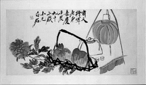 从拍卖结果以及80%的成交率来看,可以说这场拍卖拍了个“满堂彩”。这场拍卖共计有13件作品的最终拍卖价超过了100万元人民币。而最引人注目的成交是齐白石1952年创作的《满堂吉庆》,这件作品是齐白石为好友所精心写就的新春贺礼,亦属白石岁朝题材中的典型之作。齐白石作画甚少采用的横幅,而这件作品不仅为横幅构图,并且尺寸足有四尺。特别是在画面颜色的运用上,象征吉庆的彤红的浓淡、深浅相间混融,变化多端,层次丰富,视觉效果尤显强烈。鞭炮、牡丹、寿桃、酒具等贺年吉物布列疏密错落有致,编排巧妙却似在不经意间;后排高置的大红灯笼高悬普照,寓一片光明之意,成全幅最亮点。这件作品融齐白石高超的画技与吉祥的寓意于一身,身价自然百倍于其普通的作品,这也是齐白石第5件成交价格在1000万元之上的作品,目前在拍卖市场上北京翰海在2005年春拍中以2035万元成交的齐白石和陈半丁合作的《富贵长春》(立轴)是齐白石作品的拍卖最高价。该场24件齐白石的作品仅有3件流拍。