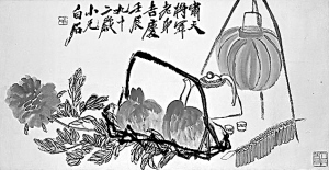 《满堂吉庆》绘于1952年,是齐白石为好友精心绘就的新春贺礼,作品色彩鲜艳,层次丰富,视觉效果强烈。