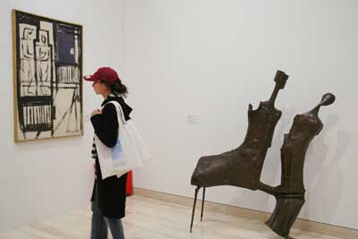 提到希腊,人们会想起她那些优美的神话传说,以及影响了整个世界的古典艺术。在世界艺术史上,古典时代的希腊是丰产而辉煌的。此次展览中,主办方选取了众多给予艺术家创作灵感的古典时代的墓碑、雕塑照片,与现代艺术作品进行对比。观众可以清晰地看到希腊现代艺术深深植根于古典文化的沃土,展览题目中的“经典回忆”,就是指现代艺术对古典的解读。