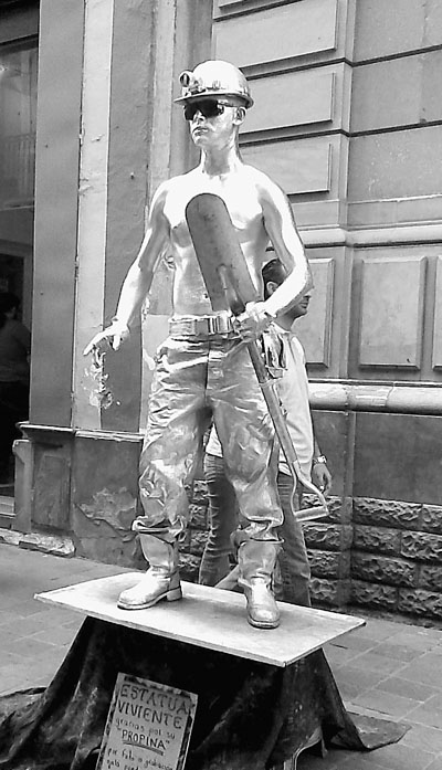 恩里克·卢埃雷斯或许没有想到,他自发的第一场露天演出成为了一种倡导,成为后来青年追求自由艺术的形式,瓜纳华托也就成为了一种艺术无疆界的象征。活力四射的青年艺术家们不在乎表演场地的大小,而是注重自我的随性发挥。走在街上,不经意间就能看到一名弹着吉他引吭高歌的歌手,或是一位自我陶醉在所扮演角色中的行为艺术人(见图,张蕾摄)。晚上,瓜纳华托市中心成了音乐的海洋。年轻人随着路边马利亚奇乐队(墨西哥民间音乐组合)的美妙乐曲,跳起动感十足的萨尔萨舞,那欢腾的场面令人心潮激荡。