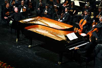 历时近一个月的第十届北京国际音乐节在经过26场次的精彩演出后,今晚将在保利剧院落下帷幕。昨晚,著名钢琴家、指挥家艾森巴赫和自己的爱徒郎朗用双钢琴的方式演奏了莫扎特《降E大调双钢琴协奏曲》。默契的配合、精彩的演绎,这不仅是师徒俩给北京观众奉献的一顿丰盛的音乐盛宴,同时也是他们联手献给北京国际音乐节十周年的一份特殊的礼物。