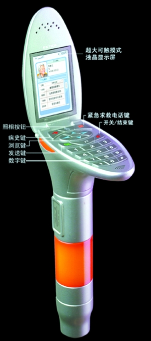 据介绍,由南京艺术学院设计学院何晓佑院长设计的“多功能电子手杖”就是受“汉代斑鸠杖”的理念和外形的启迪设计而成。早在汉代,就有因杖头为圆雕斑鸠鸟形象而得名的斑鸠手杖,它是古代朝廷授予70岁以上老人的一种权利性凭据。何晓佑将这种尊老爱老的传统道德观念与现代电子高科技结合在一起,杖头部分借用了翻盖手机设计,打开翻盖就是一个超大可触摸式液晶显示屏,键盘部分设计有紧急求救电话键、照相按钮、病史键、浏览键、发送键和数字键等,另外在杖头的侧边还设计有红色的紧急呼救按钮,杖柄靠杖头部分还有收音机、MP3播放器以及紧急呼叫闪烁灯等多种功能。这样一款具有人性化设计理念和现代实用性的设计无不让在场观众驻足研究。
