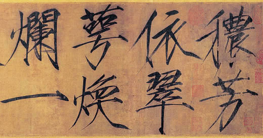 从历史上,中国不少帝王从小就受到书画名家的熏陶,有的甚至受到严格教育和训练。当了皇帝后,不少皇帝仍舞文弄墨,像唐太宗李世民,在位期间,提倡书学,笃好王羲之书法,曾亲撰《王羲之传论》,并一重金购募天下所存王羲之真迹,锐意临玩,颇有所得,开当时书坛崇王风气。相传临终时将王羲之的墨迹《兰亭序》殉葬。唐太宗擅长行草,师法二王,作品清远高致,尤善临古帖,殆于逼真。传世书迹有行书刻本《临泉铭》、《严祠铭》等。唐太宗的儿子唐高宗也极擅书法,尤精草书。不过,在历代帝王中,书画艺术成就最高的当推宋徽宗赵佶。赵佶(1082——1135年)是北宋第8位皇帝,他政治上昏庸透顶,书画艺术上却才华横溢。自小雅好丹青,未登位前被封为端王,与王洗、赵大年、黄庭坚、吴元瑜等交往甚密。19岁接替哥哥哲宗赵煦登极,做了宋代第8位皇帝,他在位25年,是北宋王朝最黑暗腐朽的25年。赵佶虽然政治上无能,但是他却是位才华横溢的书画家,尤精花鸟、书法。早年曾向吴元瑜学画,吴元瑜师法崔白,得其真传,与师齐名。赵在花鸟画上受吴元瑜的影响很大,重视写生,体物入微,以精工逼真著称,相传用生漆点鸟晴,尤见生动。赵佶的绘画风格主要有两种,一为清淡拙朴,二为精细工丽。作画注重写生,讲究画理法度,画鸟雀敢于技法创新,别开生面地用生漆点睛,似小豆般突于纸绢上,生动有致。他的书法成就极高,初学黄庭坚,后来自创一种瘦金劲锋利如“屈铁断金”的“瘦金体”。他的作品凡落款题跋皆用“瘦金体”,与绘画往往交相辉映。