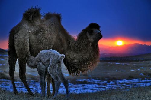 而自然风景类的一等奖作品《哺育》则以其融情入景的方式赢得了评委的青睐,画面表现的是暮色下母骆驼给小骆驼哺乳的景象。柴进主编对这幅作品点评说,有时候我们可能更关注风光,而忽略自然界好多生态的东西,这幅照片能够把自然风光和动物间的亲情结合在一起,内涵非常丰富。