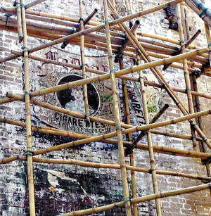 记者了解到,负责本次迁移的施工单位初步计划切割后的墙体将分成两块,“香烟”两个字单独切成一块,“美女”画单独一块,每块连同包装面积都超过10平方米,估计连同固定材料重量每块重达5吨左右。由于面积较大,要搬进博物馆遇上困难,为了保证这两件“庞然大物”在迁移过程能完好无损,做到万无一失,10月25日,已经搭好施工架准备开工的工程临时暂停,几个部门紧急碰头探讨对策。