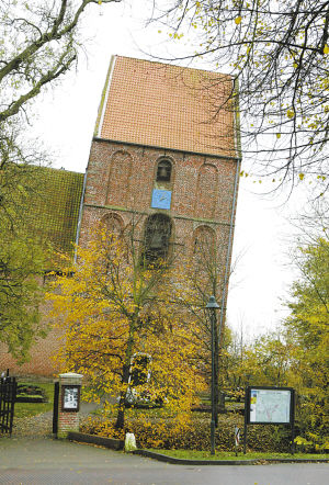 这座教堂建于13世纪中期,但高90英尺(约27.43米)的尖塔是在1450年加建的。尖塔由橡木建筑而成,而橡木结构与潮湿的地基使这座尖塔渐渐偏向一边。