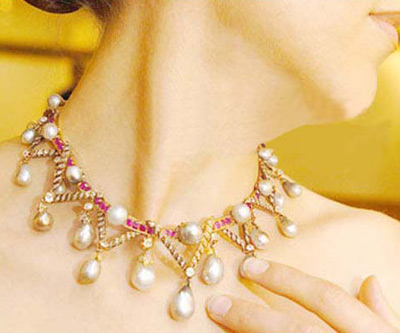模特展示法国王后珍贵项链 估价40万英镑(约600万人民币)