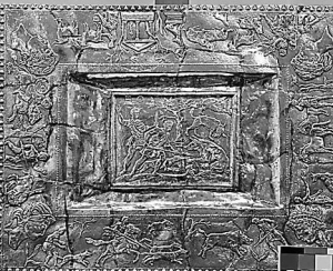 2 Risley Park Lanx古罗马银盘:1729年在英德比郡出土,相信被农工打碎熔炼,但格氏利用熔掉罗马硬币制作伪品,两名收藏家以4.5万镑(约71.6万人民币)买下并捐给大英博物馆。