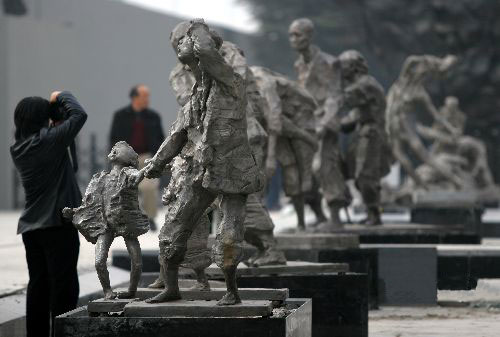 2007年11月25日,一组名为《逃难》的大型组雕在侵华日军南京大屠杀遇难同胞纪念馆新馆南面广场开始安装。据了解,这组青铜雕塑《逃难》由著名雕塑家中国雕塑院院长吴为山教授用一年半时间精心创作而成。《逃难》共由10座雕塑组合而成,再现了南京大屠杀的历史情境,惊醒人们“勿忘历史,面向未来”。孙忠南摄