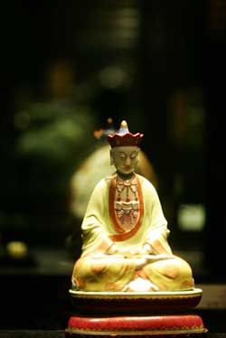 今天至12月2日,拍卖会将在昆仑饭店举行。其中古画专场中许多拍品为海外收藏家多年来的珍藏。图为即将参加拍卖的清乾隆粉彩无量寿佛,起拍价预计最少为100万元人民币。