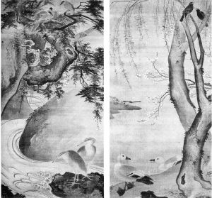 本次西泠秋拍明代专场中有“吴门四家”的沈周、文徵明、唐寅、仇英,以及吴门画派花鸟领袖画家陈淳,“华亭派”代表董其昌、李流芳,武林画派的创始人蓝瑛,明末人物花鸟画大师陈洪绶等人的佳作。其中,从日本重回中国的明代中期花鸟画派代表画家吕纪的全景花鸟画《柳荫双鸭图》和《幽涧双鹭图》尤其引人注目。相比画家,吕纪的另一个身份更令人吃惊———历经明代成化、弘治、正德三代,官至锦衣卫指挥使(秘密警察头目)。吕纪的花鸟绘画,水墨淋漓,气势宏大,甚至是日本屏风画的来源之一。《柳荫双鸭图》和《幽涧双鹭图》曾在日本出版的《听松清鉴》中著录,郑振铎在上世纪四十年代遍访流传在海外的中国名画,并在其所编的《域外所藏中国名画》中收录。吕纪的这两幅作品不仅是明代全景花鸟画的杰作,也是中国绘画影响日本绘画的证据代表作。
