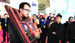 “壹空间”画廊主持人梁克刚以“房奴”造型亮相昨天开幕的“住交会”,引起不少人围观。他所佩戴的一套“枷锁”是用实木量身定做的,上面绘有楼房户型图,同时写有“房奴”二字。梁克刚戴着这套沉重的行头在住交会展厅中“巡场”多次,并且在不少知名房地产开发商的展位前停留。最后,他还在地产大王潘石屹的大照片旁单腿下跪,引起围观者的一阵哄笑。