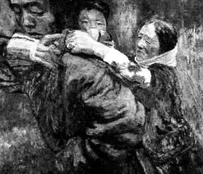看来造成这幅画真伪纷争的起因是这个故事。另外据了解,这幅画当初在复旦视觉艺术学院展出时的名称是《爱子》,而不是现在的《责任》。所以这也造成了误解。据拍卖行说,这幅画创作过程中的故事是唐先生告诉他们的,而唐先生说是陈逸飞给他这幅画时说的。陈逸飞当初是否说过这个故事,如今陈逸飞已不在人世,无法对证核实。拍卖行希望拍品拍得好,有个动听的故事当然更能够吸引人。事与愿违,一个无法核实的动听故事宣扬了出去,结果却把一幅真画说“悬”了。此事有两点总结:无法证实的故事,不必讲,也不必听;艺术品鉴定,关键是看货色,不是听故事。