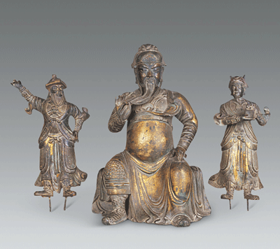 下午进行的玉器工艺品拍卖更是高价频出,一组保存完好的清中期铜鎏金关公像将本场拍卖推向高潮。此件拍品一登场,便引发藏家极大热情,数位买家互不相让,频繁举牌,当报价迅速突破百万元人民币之后,竞争依然激烈,价格不断走高,经过最后几轮较量,最终以257.6万元人民币高价成交,不仅夺得本场拍品成交额冠军,也刷新了嘉德四季瓷器杂项类拍品的成交纪录。此件关公像为北京藏家旧藏,尺寸大,雕工精,品相佳,更为难得的是两件配件同样保存完好,实属不易。