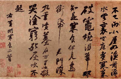 “苏轼书作分早、中、晚三个时期:早年姿媚,中年圆劲,晚年豪放。就笔法看,《春风》恣意挥发,气势磅礴,飘逸豪放,当属晚年作品。”徐启雄判断,《春风》应为苏轼在“乌台诗案”后被贬居惠州、海南,生活窘迫但仍受当地人热情接待后,以诗词、书画回赠所为,因此得以在民间保存。