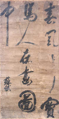 在中国书坛占有极重要地位的苏轼,目前存世书法作品仅数十件,均藏于博物馆,范围也限于手卷、书帖、横披等中小字形。“《春风》这件姗姗来迟的‘大手笔’,弥补了因缺乏大幅作品而导致的苏派书法体系的不完整。”徐启雄昨天说,“数月前,一位外地收藏者带藏品来杭州找我鉴定真伪。”徐启雄透露,这幅仅存内芯、名为《春风》的中堂大轴草书高165厘米、宽65厘米,纸面发黄发暗,部分已腐化剥落,落款为“苏轼”,另有“苏轼”、“东坡居士”两方隐约可辨的印章。上书“春风宝马人在画图中”,“春风”后缺一字,其余每字高、宽在30-60厘米,最后的“中”字高62厘米。