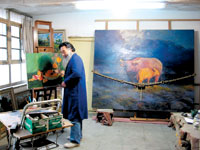 4年来,王立则早把宋庄当成自己的家。他和这里的农民相处也十分愉快。“很多村民都称呼我王老师,喜欢画画的都来找我学。附近一处面粉厂的老板学了一年,作品都能在画家村展览中露脸了。”