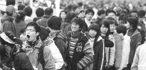 “为什么不早一天来报名呢?干吗要乘夜里的火车?”面对记者的提问,这名男生说,“浪费时间啊,而且多一天待在南京,就又多了一天住宿费。”