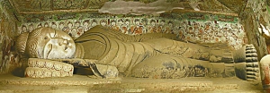 来京展览将是莫高窟第220窟复制品首次离开敦煌。复制自莫高窟第158窟的涅槃佛像(图)也将横卧中国美术馆。敦煌研究院供图