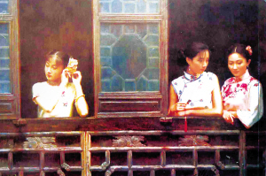 当代新海派油画的独特风貌,在巨大的画布上你能领略到使用强烈而稠密的厚重所体现出的情怀。一种超越常人的智慧使得新海派油画家可以本能地从中寻觅到一种朦胧的力量。他们有意选择了“古典式的”方式来表现作品,把我们带到了特定状态之中:生动透彻,强烈的人类生存状态。新海派油画作品为我们这块神秘化了的土地轻拂上时尚面纱,画家以抒情的笔法画出了迷人的水乡人情,一片晨光撕裂天边,射向小桥,撒向古宅、曲水,也雾气了江南。为了留住即将遗失的美好,海派画家画笔下的江南女子无论是身披绫罗锦缎,还是素着蓝印花布,都依稀诉说着水乡闺秀含蓄端庄的气质与秀外慧中的神韵。一如那玉态冰姿,历历在目,不禁让人想到了古词中“闲梦江南梅熟日,夜船吹笛雨潇潇”的娓娓意境,令无数恋乡人怀念动情。