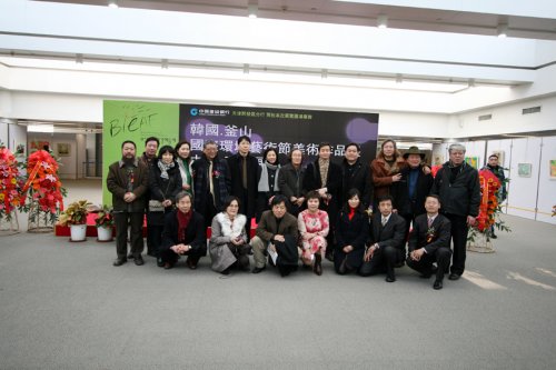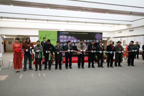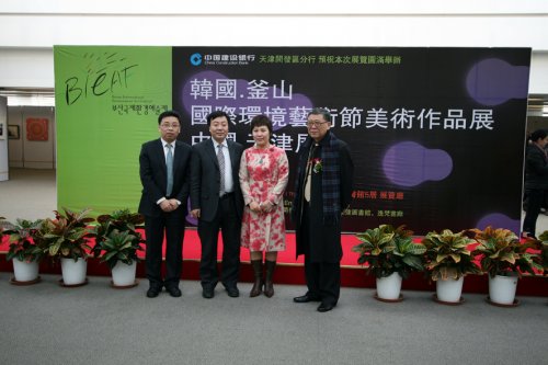 2008年1月9日上午11:00整,在天津音乐学院演奏的小提琴四重奏的乐声中,韩国釜山国际环境艺术节天津展的开幕式拉开帷幕.开幕式由泰达图书馆党委书记田忠强主持,馆长吴营致欢迎词.韩国国际文化联合组织者艺术评论家李侑相先生致开幕词.建设银行开发区分行副行长刘怀波先生致祝酒词.开发区保税区文联主席著名画家李东辉先生、画家韩富华先生、天津美协油画委员会主任王书朋先生、天津财经学院院长李宗儒先生、天津美院现代艺术学院副院长王少春先生、武警某部政委窦健先生以及韩国的艺术家剪彩。开发区商会韩国商会等喜爱艺术的朋友、画家前来参加开幕式。这次活动的开展对促进中韩艺术文化交流会起到长远的影响。