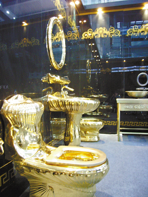 此外,表面均是以18K金烧制而成的马桶也让人惊异。参展商介绍,加上化妆镜和盥洗设备总共需要180万元,之前已经在北京卖出去一套。