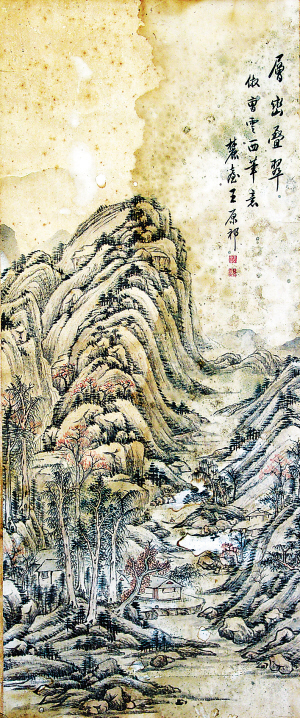 王原祁的《层峦叠翠图》是风格比较成熟之作,可以比较明显地看出,他的笔法和构图风格深得元人神韵。画作取高远之意,山居掩映,呈现出一派层峦叠翠的景象。