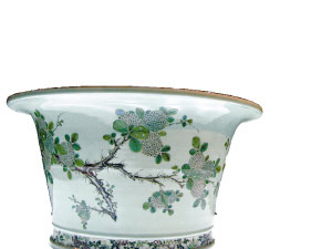 据悉,清代康乾雍三朝堪称瓷器生产的黄金时代。这批瓷器中件件都是珍品,均为国家一级文物,最为珍贵的是康熙年间一件豆青地五彩寿带荔枝花盆,目前按照市值估价千万元。五彩瓷器是康熙朝瓷器的特色品种,花盆上所画的山石的边部黑彩黝黑,金彩菊花颜色非常纯正亮眼,而蓝彩菊花则是最早的釉上蓝彩,这样的色彩搭配是康熙五彩瓷器独有的。