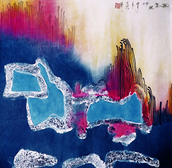 在徐嘉炀早期的创作上,仍然以墨色变化为主,略略加上一点浅绛画面偏重冷色调。随着不断地尝试逐渐减少对笔墨的执著,进一步追求气韵生动,在摆脱传统文人画点皴擦及平高远等法度后,就尝试写出自已心中的丘壑,到了近几年已渐渐掌握到把水墨画推进抽象的世界。今次展出作品有一部份是以抽象构图去描绘九寨沟的山山水水,这批作品以色的层次在宣纸上一层又一层渲染而成。